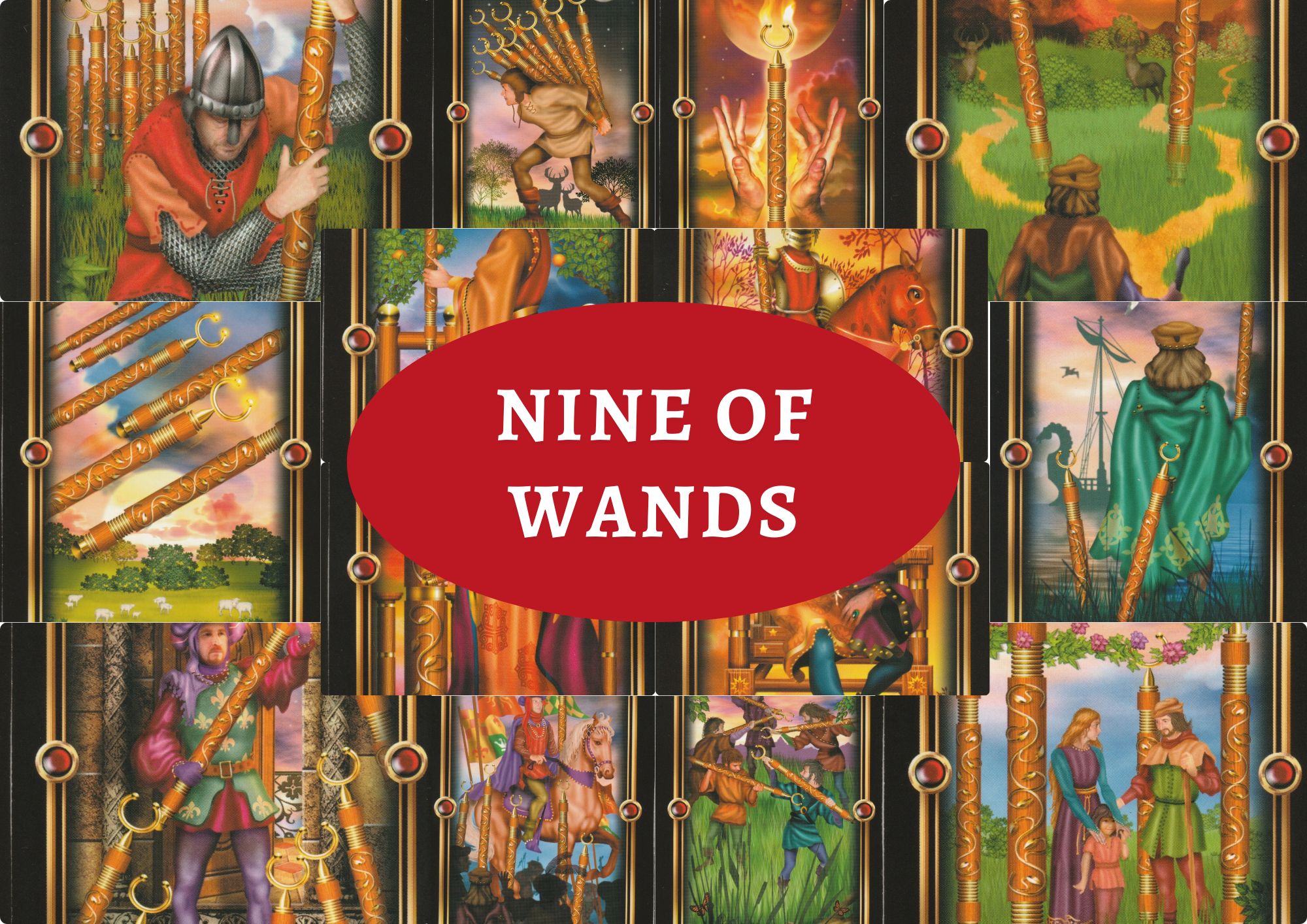 Nine of Wands card is the ninth card present in the Suit of Wands in the Minor Arcana of Tarot Cards.